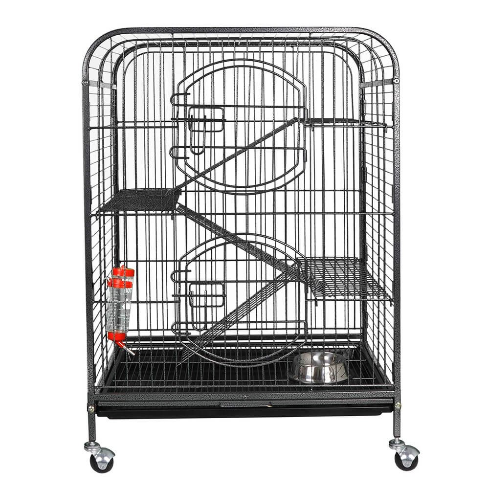 Tágas háromszintes kisállat ketrec kerekekkel, kihúzható alomtálcával, etetőtállal és itatóval. Könnyen mozgatható, tisztítható és kényelmes kedvenced számára.
